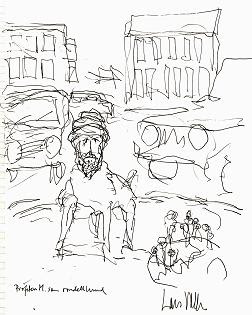 Hur löjlig får man vara i religionens namn? Det är ju bara en teckning!!! Dessutom en riktigt dålig teckning. Jag anser att Lars Vilks är en charlatan och klåpare, men givetvis måste han få rita vilka teckningar han vill.